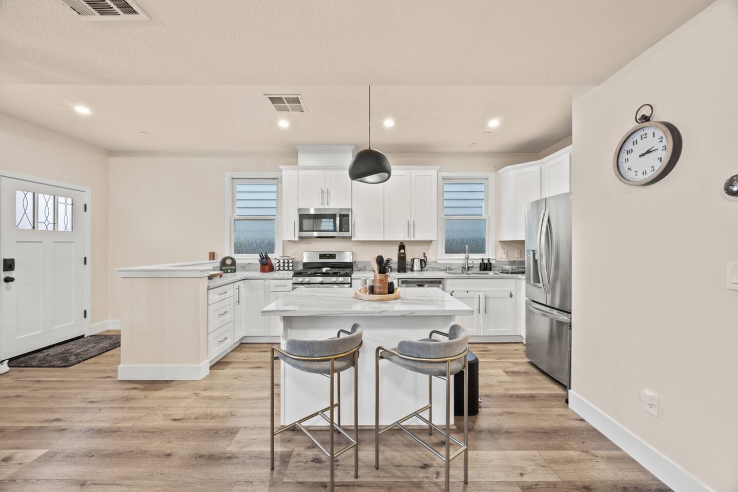 Please note that we have installed a security camera at the front door, pointed outside for security purposes, and a NoiseAware device inside the home to monitor noise levels. The NoiseAware device is not intended for recording, and please be assured that we cannot hear any audio from it. We want to ensure that your stay with us is enjoyable and hassle-free. To make sure that we maintain the property's cleanliness and safety, we kindly request that you take note of the following reminders for STRICT IMPLEMENTATION during your stay at our property: • Pets are strictly prohibited on the premises. • Smoking, vaping, or use of marijuana is strictly not allowed anywhere on the property. Please smoke on the street and do not litter cigarette butts or ashes on the property. • Parties, events, birthdays, bachelor or bachelorette stays, get-togethers, and the like are not allowed. • Check-in time is after 4 PM and check-out time is by 11 AM. • Please use the smart lock for self-check-in. • Respect your neighbors by keeping noise levels down and avoiding disturbances. • Do not wash dishes in the bathroom sink. • Burning candles, incense, or any other open flames is strictly prohibited. • Per regulations, guests are not allowed to use the mailboxes on site. You may have Amazon packages delivered to the door and also use nearby post office boxes for mail. We would not be liable for any lost packages. • Please ensure that you lock the door AT ALL TIMES to ensure the safety of you and your belongings. • The number of guests staying should not exceed the number stated in your reservation, and unapproved visitors are not allowed. • Loud music or disturbances, especially noise past 10 PM, are not allowed. • Please note that excessive internet data usage will result in a fee of $50 if it exceeds the limits of our plan. • If you open it, close it; if you borrow it, return it; if you turn it on, turn it off; if you break it, fix it; if you use it, look after it; if you make a mess, clean it up; and if you move it, replace it. NOTE: We are not responsible or liable for any accidents, injuries, or illnesses that occur while on the premises. We are not responsible for the loss of personal belongings or valuables during your stay. We cannot be responsible for any items left behind. • FEES: A lost remote control (TV, fan, or air conditioner) will result in a $100 charge. • Deep Cleaning and Holiday Cleaning Fee A deep cleaning fee applies to reservations of 7 nights or more. A holiday cleaning fee also applies to guests who check out during recognized holiday dates. An additional $87.5 fee will be charged for bookings that meet the criteria for both deep cleaning and a holiday stay. This amount will be collected through the Airbnb Resolution Center after the reservation is confirmed. • FEES: A $250 fine will be imposed for any type of smoking. • FEES: Unapproved Late Check-Out fees: Every hour after 11 a.m. is an additional $50. • FEES: Additional guests not listed in your reservation will be charged $50 per night per person. Please be completely transparent in your reservation to avoid this issue. • FEES: A $250 fee will be assessed for blocking or covering entrance surveillance cameras. •Toiletries provided in the bathroom are intended for initial use only. These items are meant to serve as a startup kit to get you settled in upon your arrival. For longer stays or if you require additional supplies, we kindly ask that you make the necessary arrangements to purchase these items as needed. Thank you for your cooperation in making sure that our property remains a peaceful and safe environment for all our guests.