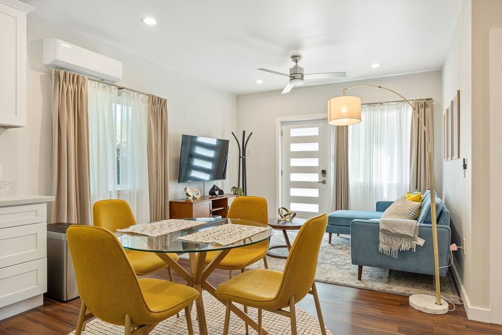 Please note that our unit is located in the same lot as another unit. Also, our EV Charger requires an adaptor for non-Tesla Vehicles. Please note that we have installed a NoiseAware device inside the home to monitor noise levels. The NoiseAware device is not intended for recording, and please be assured that we cannot hear any audio from it. We want to ensure that your stay with us is enjoyable and hassle-free. To make sure that we maintain the property's cleanliness and safety, we kindly request that you take note of the following reminders for STRICT IMPLEMENTATION during your stay at our property: • Pets are strictly prohibited on the premises. • Smoking, vaping, or use of marijuana is strictly not allowed anywhere on the property. Please smoke on the street and do not litter cigarette butts or ashes on the property. • Parties, events, birthdays, bachelor or bachelorette stays, get-togethers, and the like are not allowed. • Check-in time is after 4 PM and check-out time is by 11 AM. • Please use the smart lock for self-check-in. • Respect your neighbors by keeping noise levels down and avoiding disturbances. • Do not wash dishes in the bathroom sink. • Burning candles, incense, or any other open flames is strictly prohibited. • Per regulations, guests are not allowed to use the mailboxes on site. You may have Amazon packages delivered to the door and also use nearby post office boxes for mail. We would not be liable for any lost packages. • Please ensure that you lock the door AT ALL TIMES to ensure the safety of you and your belongings. • The number of guests staying should not exceed the number stated in your reservation, and unapproved visitors are not allowed. • Loud music or disturbances, especially noise past 10 PM, are not allowed. • Please note that excessive internet data usage will result in a fee of $50 if it exceeds the limits of our plan. • If you open it, close it; if you borrow it, return it; if you turn it on, turn it off; if you break it, fix it; if you use it, look after it; if you make a mess, clean it up; and if you move it, replace it. NOTE: We are not responsible or liable for any accidents, injuries, or illnesses that occur while on the premises. We are not responsible for the loss of personal belongings or valuables during your stay. We cannot be responsible for any items left behind. • FEES: A lost remote control (TV, fan, or air conditioner) will result in a $100 charge. • Deep Cleaning and Holiday Cleaning Fee A deep cleaning fee applies to reservations of 7 nights or more. A holiday cleaning fee also applies to guests who check out during recognized holiday dates. An additional $87.5 fee will be charged for bookings that meet the criteria for both deep cleaning and a holiday stay. This amount will be collected through the Airbnb Resolution Center after the reservation is confirmed. • FEES: A $250 fine will be imposed for any type of smoking. • FEES: Unapproved Late Check-Out fees: Every hour after 11 a.m. is an additional $50. • FEES: Additional guests not listed in your reservation will be charged $50 per night per person. Please be completely transparent in your reservation to avoid this issue. • FEES: A $250 fee will be assessed for blocking or covering entrance surveillance cameras. •Toiletries provided in the bathroom are intended for initial use only. These items are meant to serve as a startup kit to get you settled in upon your arrival. For longer stays or if you require additional supplies, we kindly ask that you make the necessary arrangements to purchase these items as needed. Thank you for your cooperation in making sure that our property remains a peaceful and safe environment for all our guests.