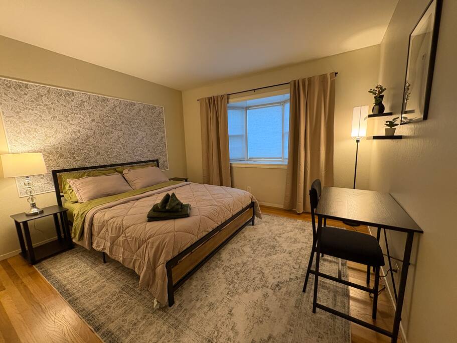 Stay in your private room within this charming 4-bedroom, 2-bath mid-century home in a prime Sacramento area. The room features a secure lock, comfortable bed, and ample storage, providing a peaceful retreat after a day of exploring the city. Shared Spaces for Comfort and Convenience: • Relax in the living room with a sofa and TV • Cook and dine in the fully equipped kitchen • Access a shared bathroom located downstairs • Enjoy the spacious backyard and sunroom for morning coffee or evening relaxation Prime Location: • Just minutes from Downtown Sacramento • Close to the American and Sacramento Rivers, shopping, dining, and schools • Quick access to major freeways and Sacramento International Airport Perfect for solo travelers, business guests, or anyone visiting Sacramento, this private room offers comfort, convenience, and a home-like atmosphere. Step in, settle down, and make the most of your stay in the city!