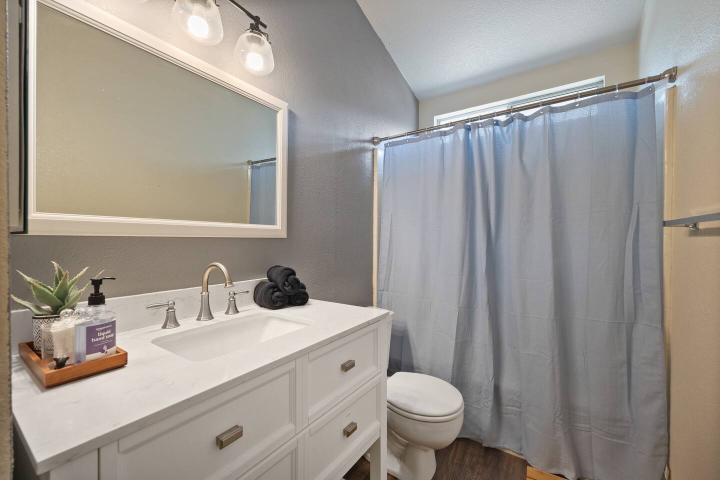 Welcome to the Sanctuary, your cozy getaway nestled in a peaceful cul-de-sac just moments away from Kaiser South Sac and Delta Shores. This modern 3-bedroom, 2-bathroom retreat is waiting to welcome you with open arms. Step inside and you'll find a meticulously furnished and recently renovated space, designed with your comfort in mind. From the moment you walk through the door, you'll feel the warm and inviting atmosphere, inviting you to kick back and unwind. Relax in the living area, where plush seating invites you to sink in and enjoy some downtime. Gather around the large TV, equipped with Netflix for endless entertainment options. Please note, that although the fireplace adds charm to the space, it's not available for use during your stay. The fully equipped kitchen is ready for all your culinary adventures, whether you're whipping up a quick breakfast or preparing a delicious dinner. And with high-speed WiFi throughout the home, staying connected is a breeze. After a day of exploring Sacramento, retreat to one of the three bedrooms, each offering ample space and cozy bedding for a restful night's sleep. With two pristine bathrooms at your disposal, there's no need to worry about queuing for the shower in the morning. As the evening approaches, head outside to the patio and enjoy the gentle California breeze. Furnished with comfortable outdoor seating, it's the perfect spot to unwind with a glass of wine under the stars or simply soak up the peaceful ambiance. Parking is convenient with two slots available in the driveway. Please note that the garage is unavailable for use. If needed, additional parking is available on the street. Get ready to experience comfort, convenience, and a touch of tranquility during your stay. We can't wait to welcome you and ensure your time with us is nothing short of exceptional. See you soon!