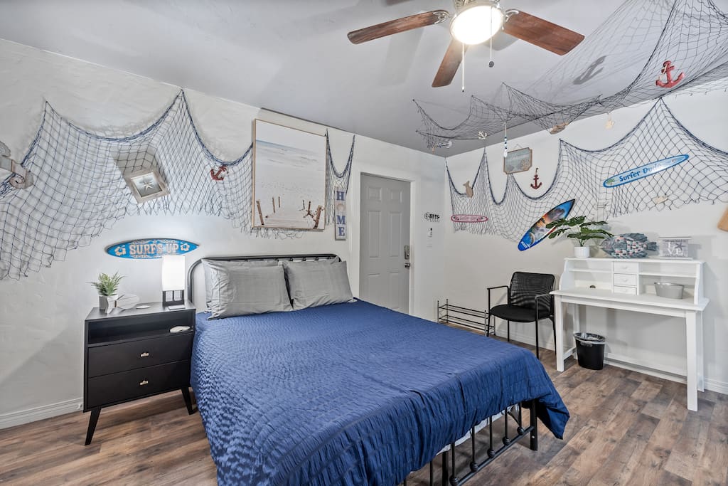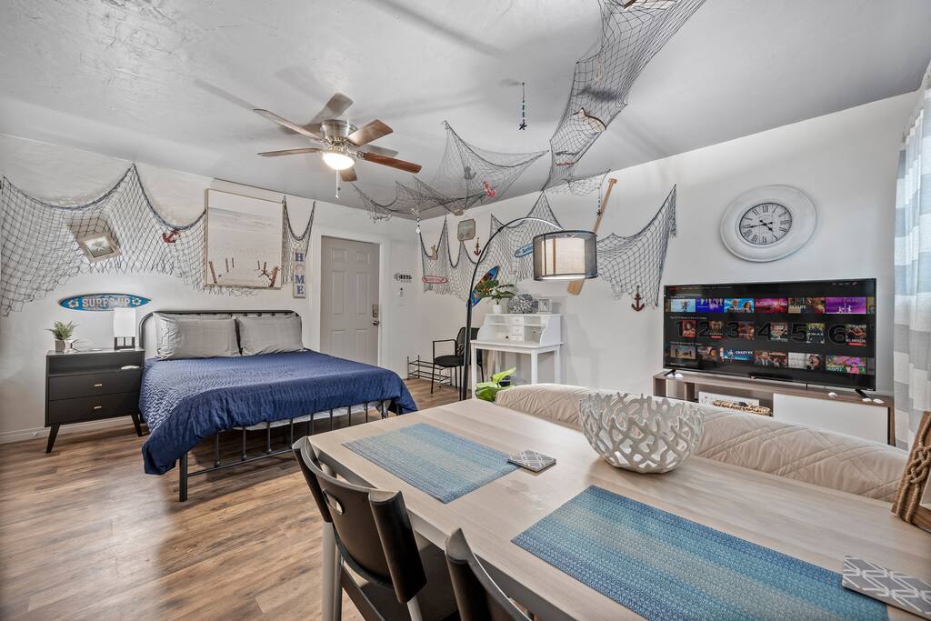 Welcome to our enchanting beach-themed studio nestled in the heart of Citrus Heights, Sacramento! Step into a world of seaside wonder as you enter our thoughtfully decorated studio. The soft hues of ocean blues, sandy tans, and playful pops of coral will transport you straight to the sandy shores of a tropical paradise. - Smart TV with Netflix, Disney - Fully equipped kitchen w/ coffee maker - Professionally cleaned home - Parking provided