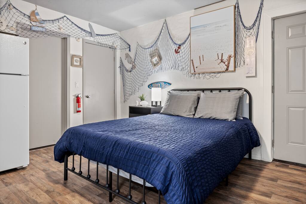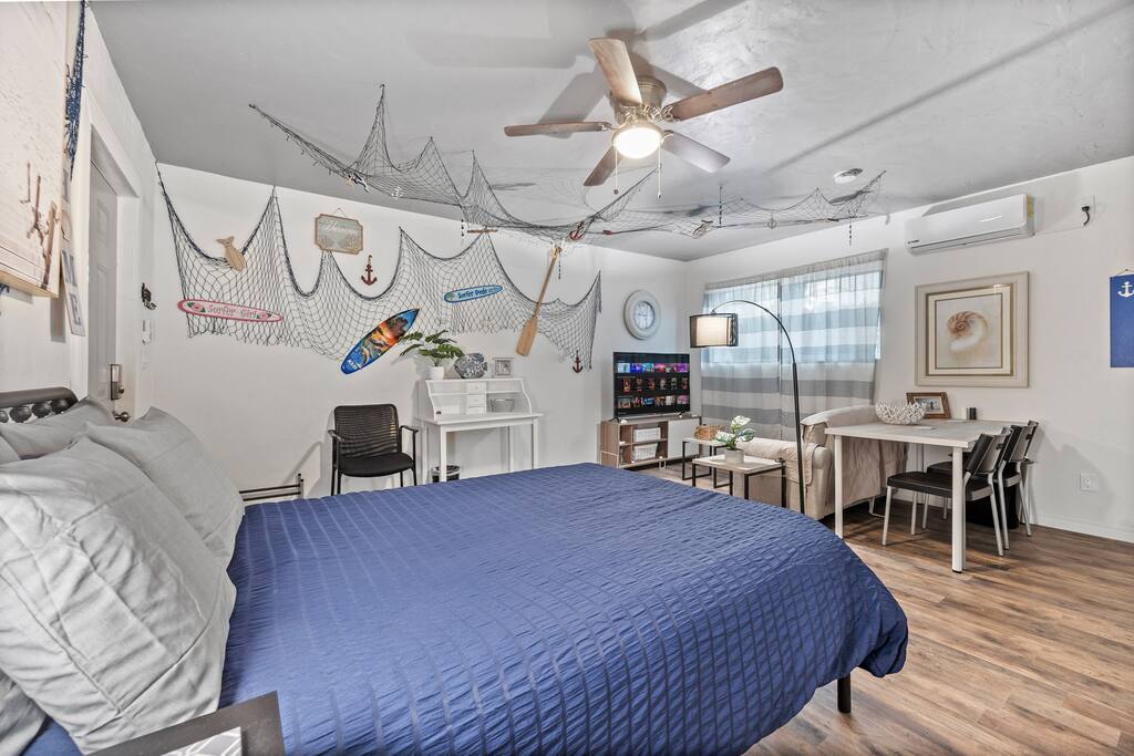 The studio boasts modern amenities to ensure your utmost comfort and entertainment. Unwind and indulge in your favorite Netflix and Disney shows on the large Smart TV, providing endless entertainment options for your leisurely evenings. Lose yourself in the magic of cinema right from the comfort of your plush bed or cozy sofa, making your stay a truly immersive experience. For those seeking convenience, we've got you covered! A dedicated parking space awaits, ensuring you have a hassle-free time coming and going as you explore the nearby attractions. Speaking of attractions, you'll find yourself in close proximity to a myriad of exciting places, from charming local cafes and eateries to renowned landmarks that will leave you in awe. Though our studio does not feature a traditional stove, we have thoughtfully provided a versatile 3 burner cooktop device, allowing you to whip up delicious meals with ease. The chic kitchenette is fully equipped with all the essentials, making meal preparation a delightful experience. Whether you're a solo adventurer on a quest for rejuvenation or a romantic couple seeking a private escape, our beach-themed studio promises an unforgettable stay. Book your stay now and we look forward to hosting you! *Important: Though, our smart TVs have streaming apps installed (Netflix, Disney+, Amazon Prime), guests would need to log in with their own credentials. Please remember to logout of the apps at checkout.
